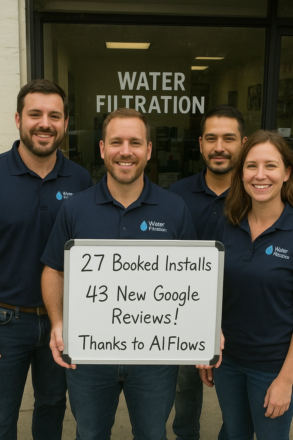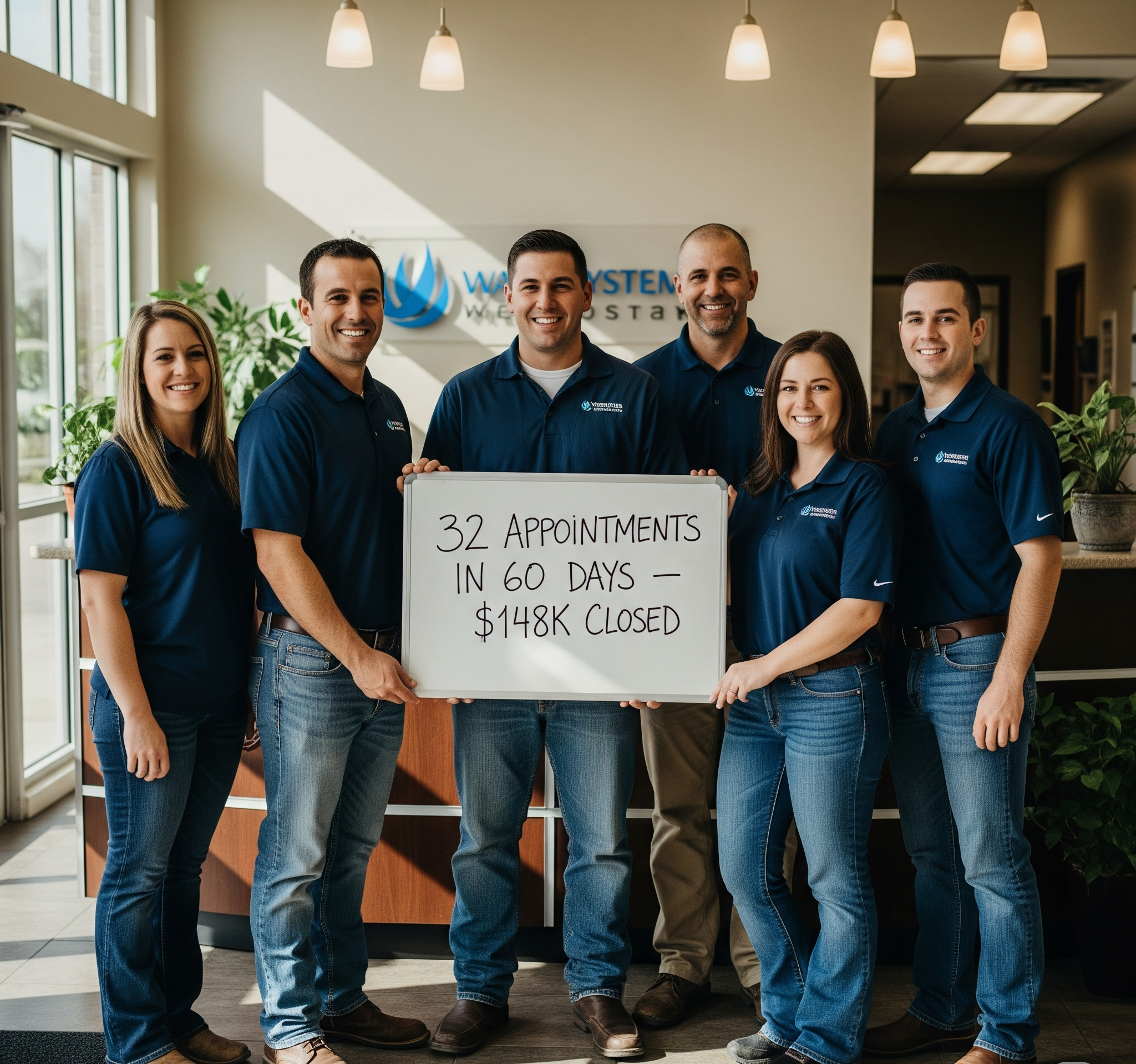 Challenge: Marcus and Levi, co-owners of a small water softener installation company, were relying on word-of-mouth and scattered referrals. Their vans and crew often sat idle during slow weeks, with no predictable pipeline of jobs.